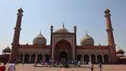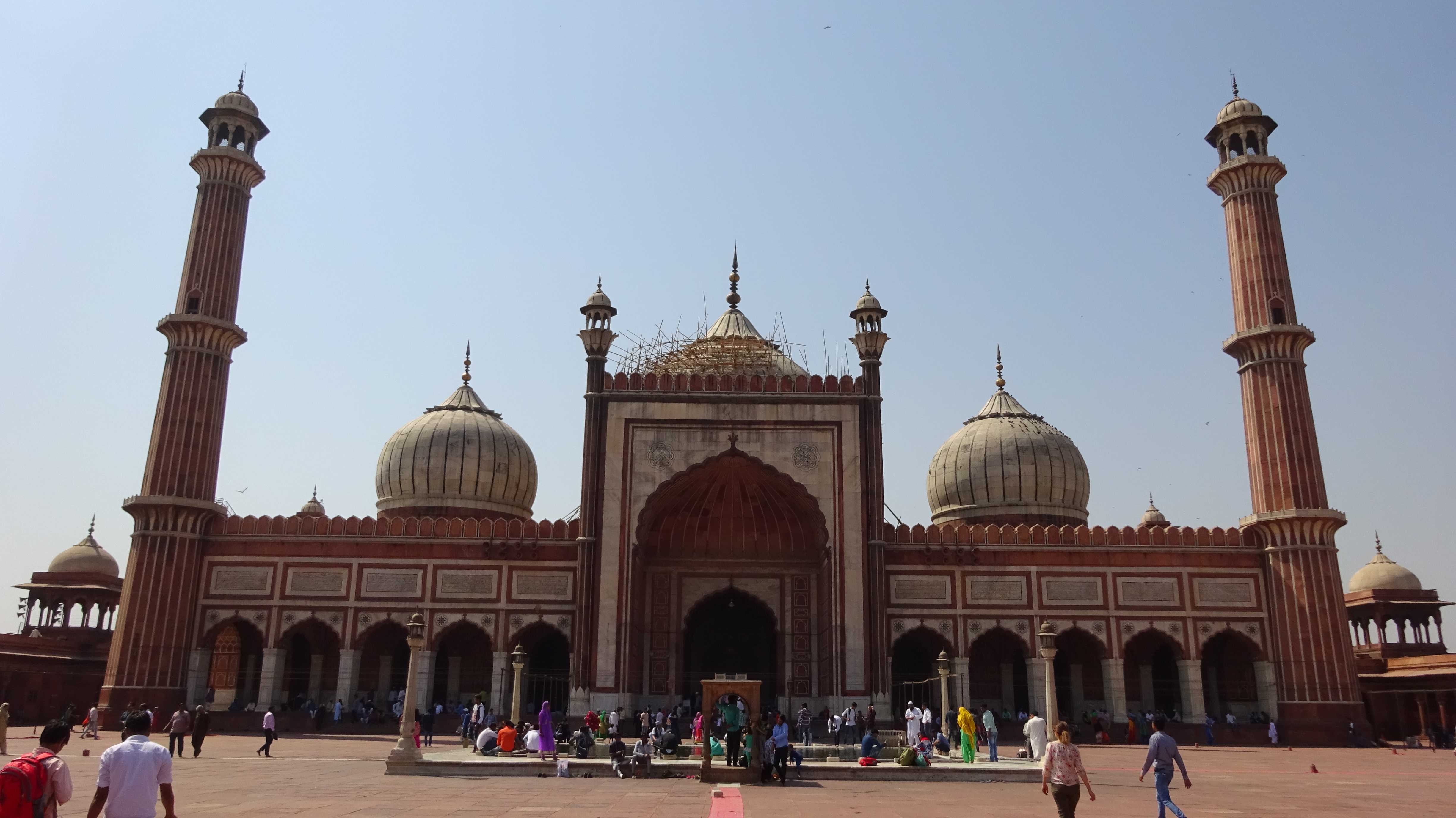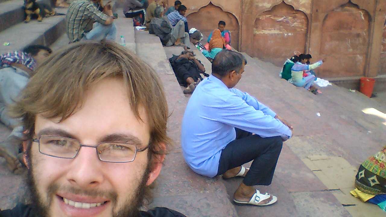 Ich tippe diese Zeilen in mein Handy, während ich darauf warte, dass die größte Moschee Indiens um 13:30 Uhr auch für Touristen öffnet. Ich sitze im Schatten der Moschee, draußen auf Steinstufen, inmitten einem Haufen Inder, die ebenfalls warten. Auf was? Keine Ahnung. Viele von ihnen haben ein Tuch oder einen Karton als Sitzunterlage mitgebracht, die in der Regel deutlich dreckiger sind, als die Stufen. Vereinzelt haben sich auch Straßenköter zu uns auf die Stufen gesellt, schlafend oder hechelnd. Auf den Bäumen sitzen dutzende Greifvögel. Falken, oder so. Warum? Keine Ahnung. Und da ist er wieder, der Moment, wo man denkt, so langsam wäre man ein bisschen gegen Überraschungen immunisiert. Und dann sieht man am Fuße der Treppe, wie ein Mann seinem nackten, schreienden, vielleicht zweijährigen Kind mit überaus groben Bewegungen Seife über Körper und Gesicht schrubbt, während die Mutter Wasser aus einer Plastikflasche über den Knirps gießt. So etwas verkürzt einem die gefühlte Wartezeit.