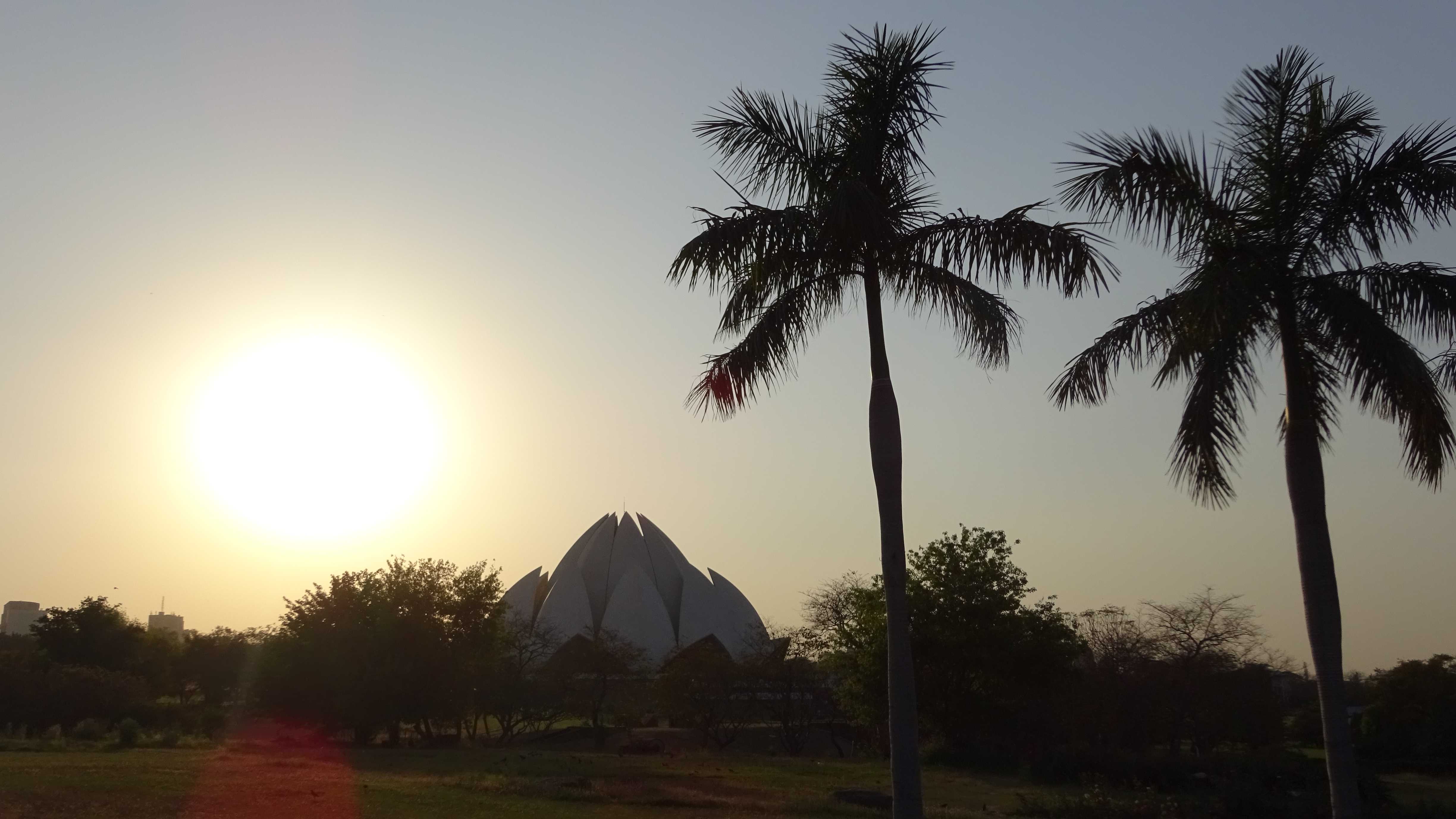 Die Hitze und der Trubel machen müde. Und geschlafen hab ich letzte Nacht ja auch nicht. Ich kaufe mir eine Cola, setze mich in einen Park, der um den Lotustempel herum angelegt ist, und tippe in mein Handy, was ich sehe: Eine Frau sammelt das vereinzelt am Boden liegende Laub mit den Händen auf und legt es auf eine 2×2-Meter große Plastikplane, die sie dann hinter sich herzieht. Ich frage mich, ob die Frau bei der Stadt zur Reinhaltung des Parks angestellt ist, oder ob sie das Laub einfach aufsammelt, weil sie es brauchen kann. Zum Verbrennen vielleicht. Oder als Viehfutter.