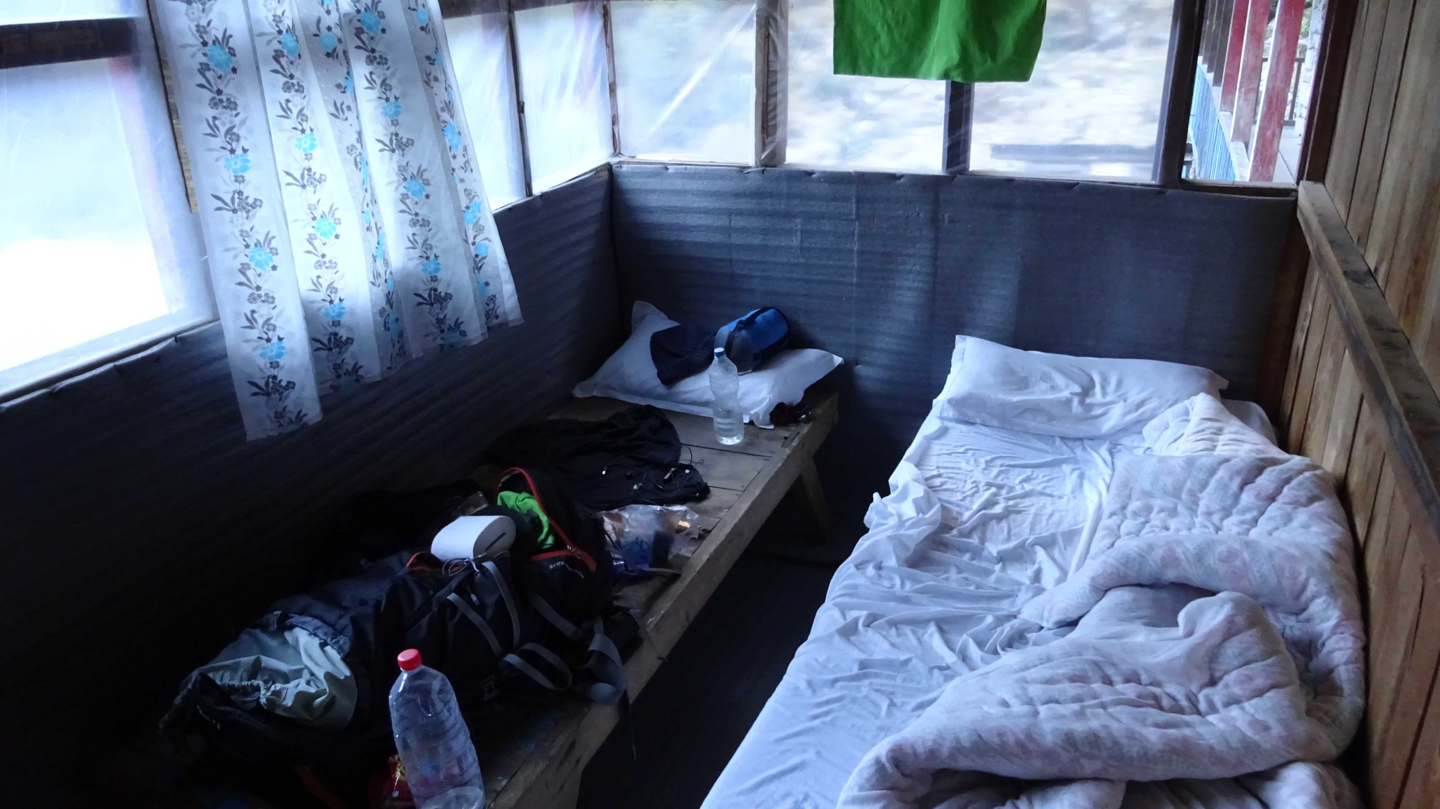 Am Nachmittag kehre ich schließlich in die Baumzone zurück. Es ist 14:00 Uhr und in vier Kilometern will ich übernachten – später macht wenig Sinn, da ich sonst zu früh wieder auf die Straße treffe, wo der Bus abfährt. So schlendere ich mehr als dass ich wandere durch den Wald. Immer wieder bleibe ich stehen und suche die Kronen der knorrigen, moosbewachsenen Bäume sowie die Flussufer nach dem Kleinen Panda ab, aber keiner will sich mir zeigen. Beim Abendessen in der Lodge frage ich einen nepalesischen Tourguide, der zusammen mit einer deutschen Rentnerin unterwegs ist, ob er hier schon mal Kleine Pandas gesehen hat. Einmal, meint er, und da auch nur kurz, weil das Tier sofort im Gebüsch verschwunden ist. Gehört offensichtlich also schon eine ganze Menge Glück dazu.