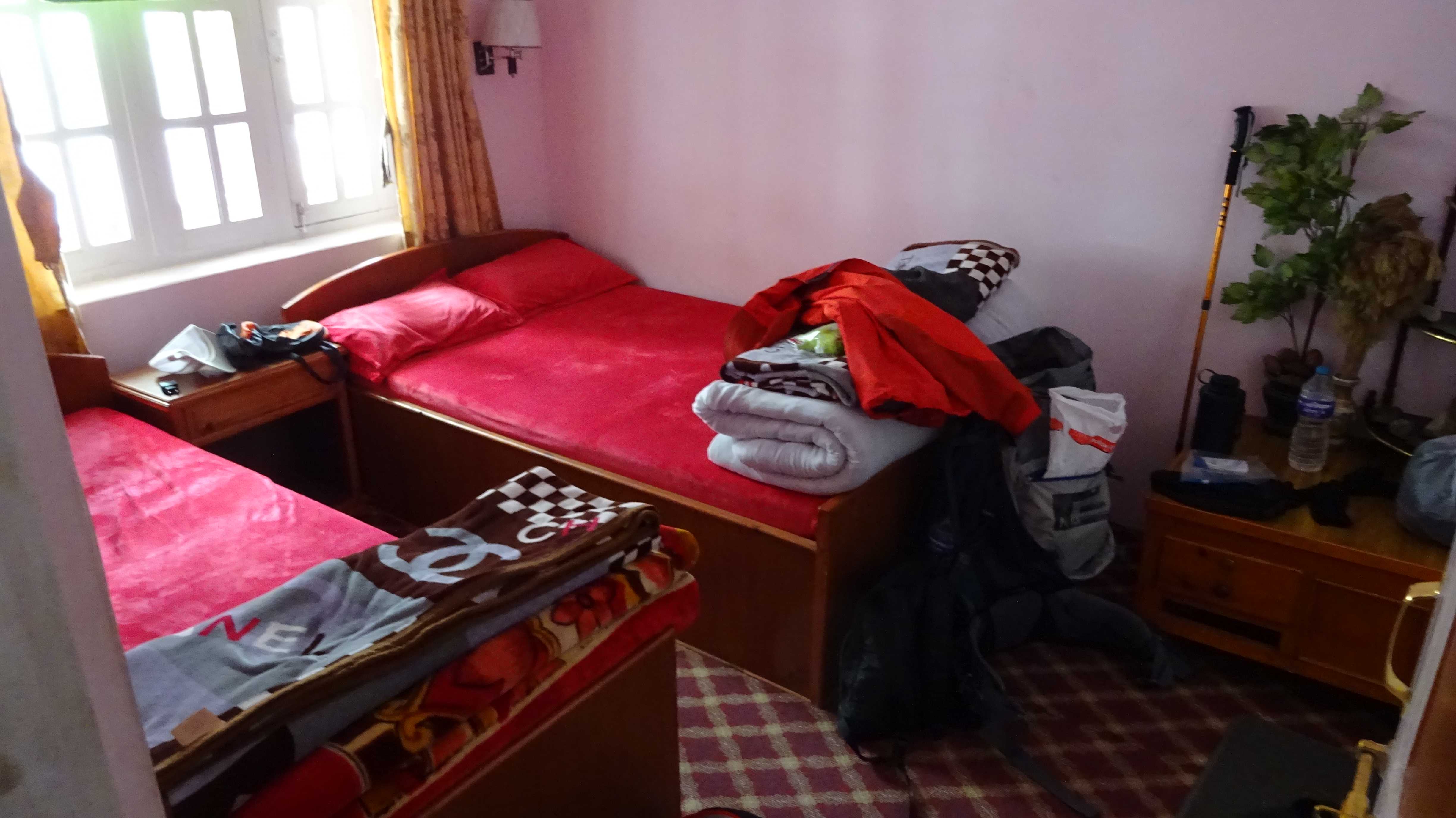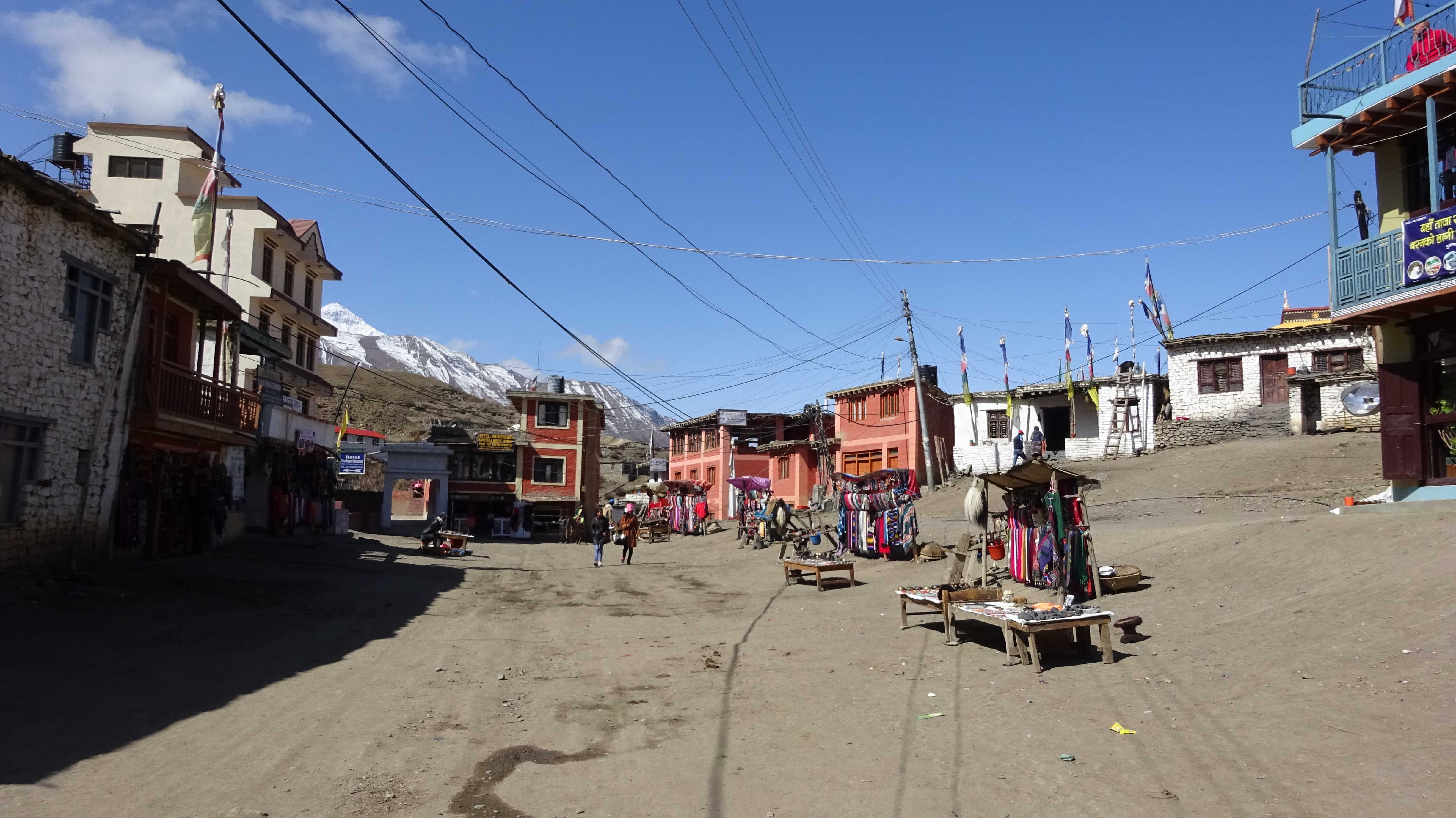 In Jomsom fragen wir an einem vergleichsweise noblen Hotel nach dem Zimmerpreis: 1000 Rupien (8 Euro). Wir lehnen ab: Das sind wir billiger gewohnt. Während wir zum nächsten Hotel laufen, merken wir, wie lächerlich es eigentlich ist, ein ordentliches Zimmer wegen eines Preises von acht Euro abzulehnen. Das nächste Hotel sieht von außen nicht ganz so nobel aus, kostet aber dasselbe. Wir sind einverstanden und das Zimmer ist für unsere Verhältnisse luxuriös: Teppichboden, Bilder an den Wänden, ein eigenes, westlich eingerichtetes Bad mit einer Dusche, aus der ein ordentlicher Strahl heißes Wasser kommt, ganze drei Steckdosen. Definitiv ein würdiger Abschluss unserer Wanderung!