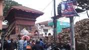 Am Nachmittag gehen wir zum Durbar Square, dem Platz vor dem älteren Königspalast, auf dem auch ein Haufen Tempelgebäude stehen oder besser gesagt standen, denn die meisten sind dem Erdbeben 2015 zum Opfer gefallen und bisher nicht wiederaufgebaut worden. Der Platz kostet für Ausländer acht Euro Eintritt und wir beschränken uns darauf, ihn nur von außen anzuschauen, was einigermaßen gut geht. Die noch stehenden Gebäude haben lange Risse in der Fassade, überall liegen die Überreste der ehemaligen Gebäude herum: Meterhohe Backsteinhaufen.