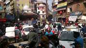Am zweiten Tag teilen wir uns auf: Valentin besucht den Boudhanath Stupa, über die ich schon im Bericht Nepalesische Konfliktbeilegung berichtet habe. Ich miete einen Roller, fahre damit erst auf einen Berg mit Übersicht über das Kathmandu-Tal und düse anschließend die große Ringstraße von Kathmandu entlang. 30 km einmal im Kreis um die Stadt, sowas wie ein Autobahnring, theoretisch zweispurig in jede Richtung, aber natürlich keine Autobahn, sprich keine bauliche Trennung der Fahrtrichtungen, es gibt Kreuzungen und Geschäfte am Straßenrand. Praktisch gibt's halt so viele Spuren, wie gerade gebraucht werden und Platz haben. Es gibt keine Ampeln, keine Verkehrszeichen, maximal mal ein Polizist regelt den Verkehr auf großen Kreuzungen; ansonsten fährt jeder wie er will und wie er kann. Es gibt Schotterabschnitte, das meiste ist aber ganz gut geteert. Also, ziemlich breite Straße, dichter und somit relativ langsamer Verkehr: Da kann man sich wunderbar von links nach rechts und wieder zurück schlängeln um so viele Autos wie möglich links wie rechts zu überholen. Immer geht es darum, zum richtigen Zeitpunkt in die richtige Lücke zu witschen.