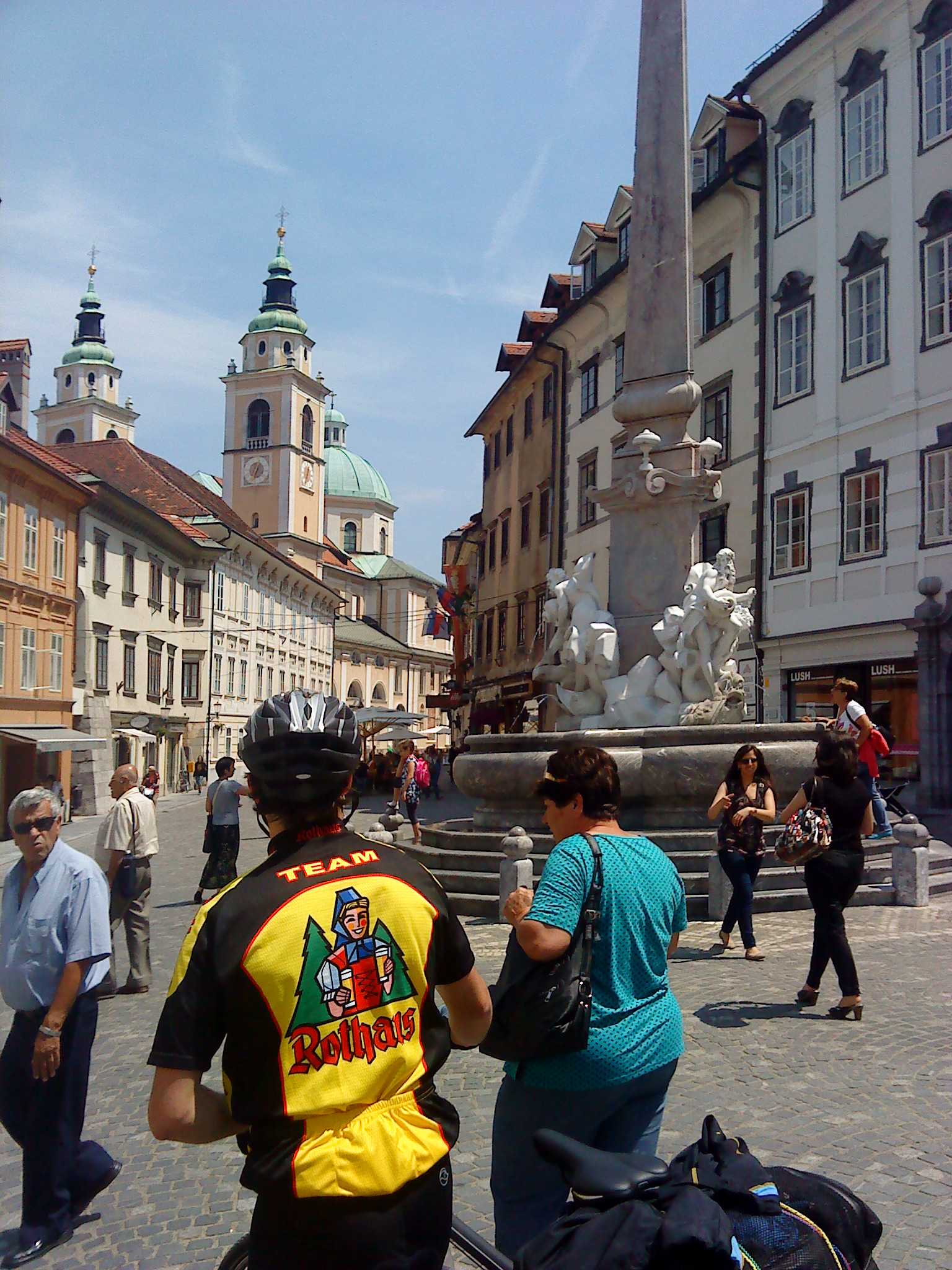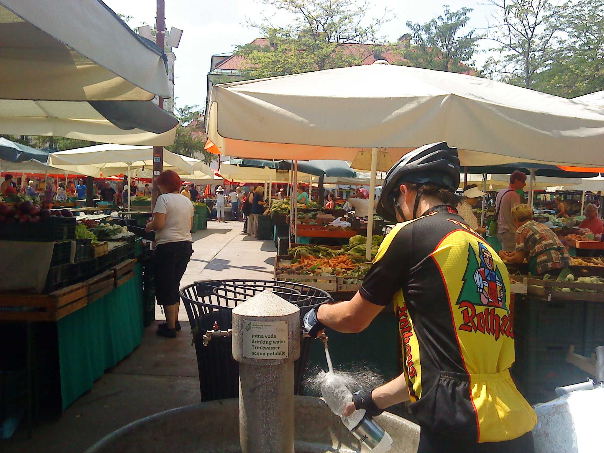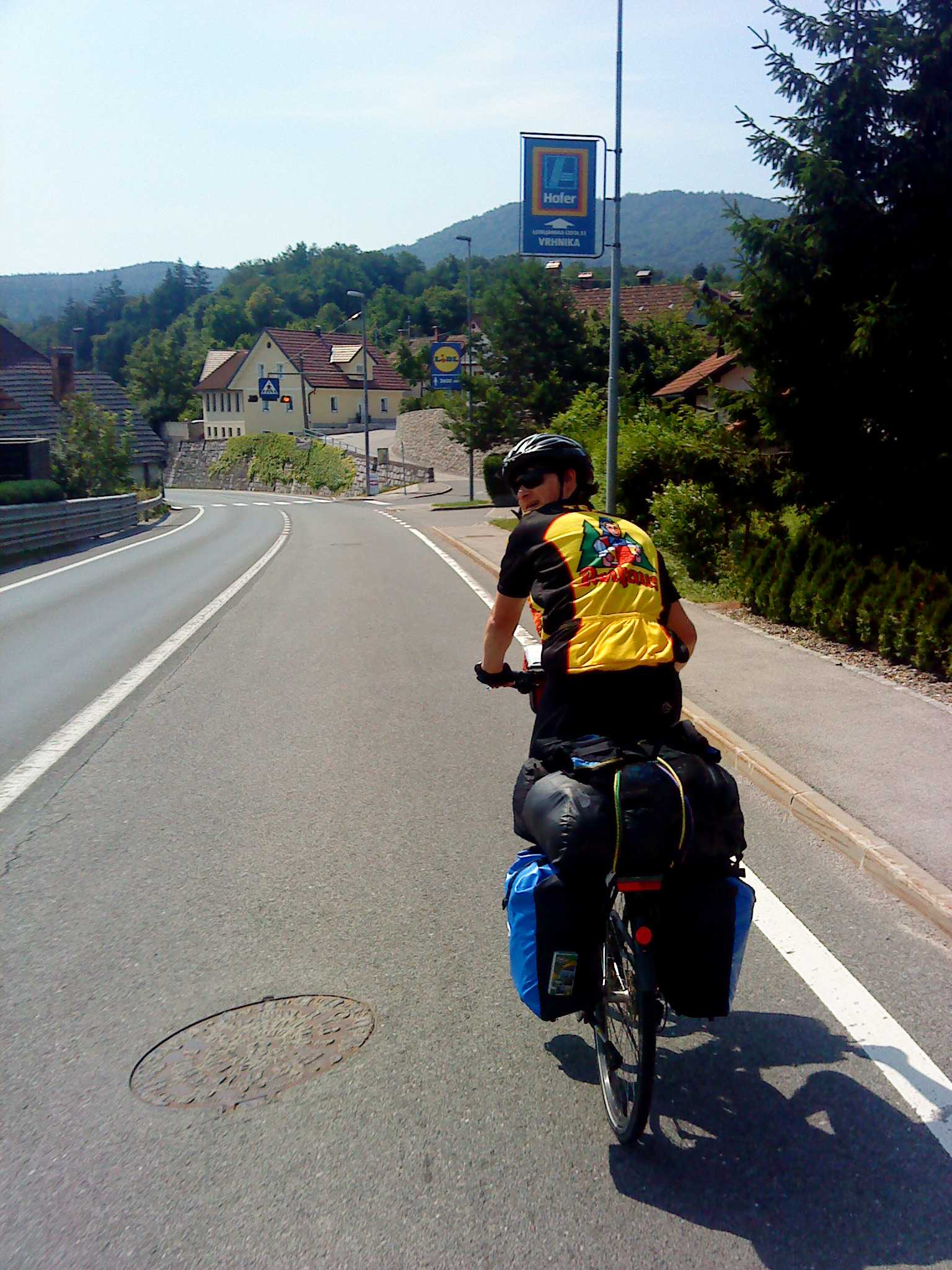 Erste größere Stadt erreicht: Grüße aus einem Internetcafé in Ljubljana! Slowenien ist uns sehr sympathisch, die Leute grüßen am Straßenrand, Radwege sind so angebracht, dass man sie auch gerne benutzt (anders als in Italien, wo man oftmals lieber auf der Straße nebendran fahren würde) und als wir gestern Abend auf der Suche nach einem Schlafplatz waren, hat der erste Slowene, den wir gefragt haben, uns direkt erlaubt, auf seinem Grundstück zu zelten. Heute waren wir in einem Fischrestaurant in Ljubljana essen und die Fischchen waren durchaus so vollständig, dass man die Art noch hätte bestimmen können … die Hemmschwelle zu Heuschrecken kann kaum grösser sein, aber geschmacklich war es ganz passabel. Jetzt schauen wir, dass wir aus Ljubljana Richtung Süden rauskommen und mal wieder wird es auf Schlafplatzsuche gehen … einen Camping-Platz verzeichnet unsere Karte nicht.
