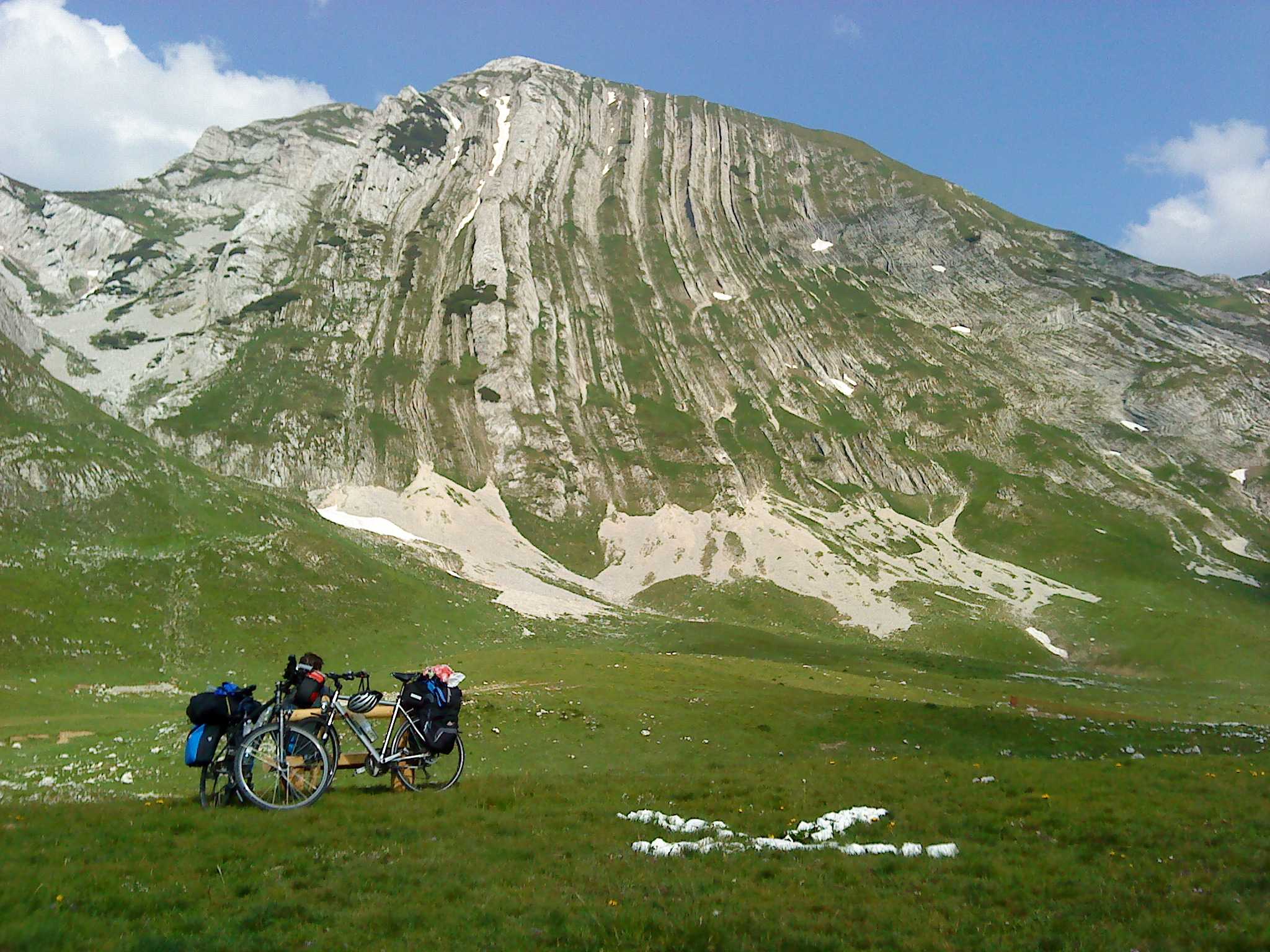 Am Abend campen wir noch in Bosnien: Die Schluchten in Montenegro lassen Wildcampen vermutlich nicht zu. Wir finden ein ebenes Fleckchen Gras. Ein wenig Sorgen machen uns noch die Minen und die Bären: Wir laufen daher nur über gemähte Bereiche, wo anscheinend schon Menschen vor uns waren, und deponieren unsere Essenstasche ein Stück weit vom Zelt entfernt. Wir treten weder auf eine Mine, noch sehen wir einen Bären.