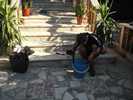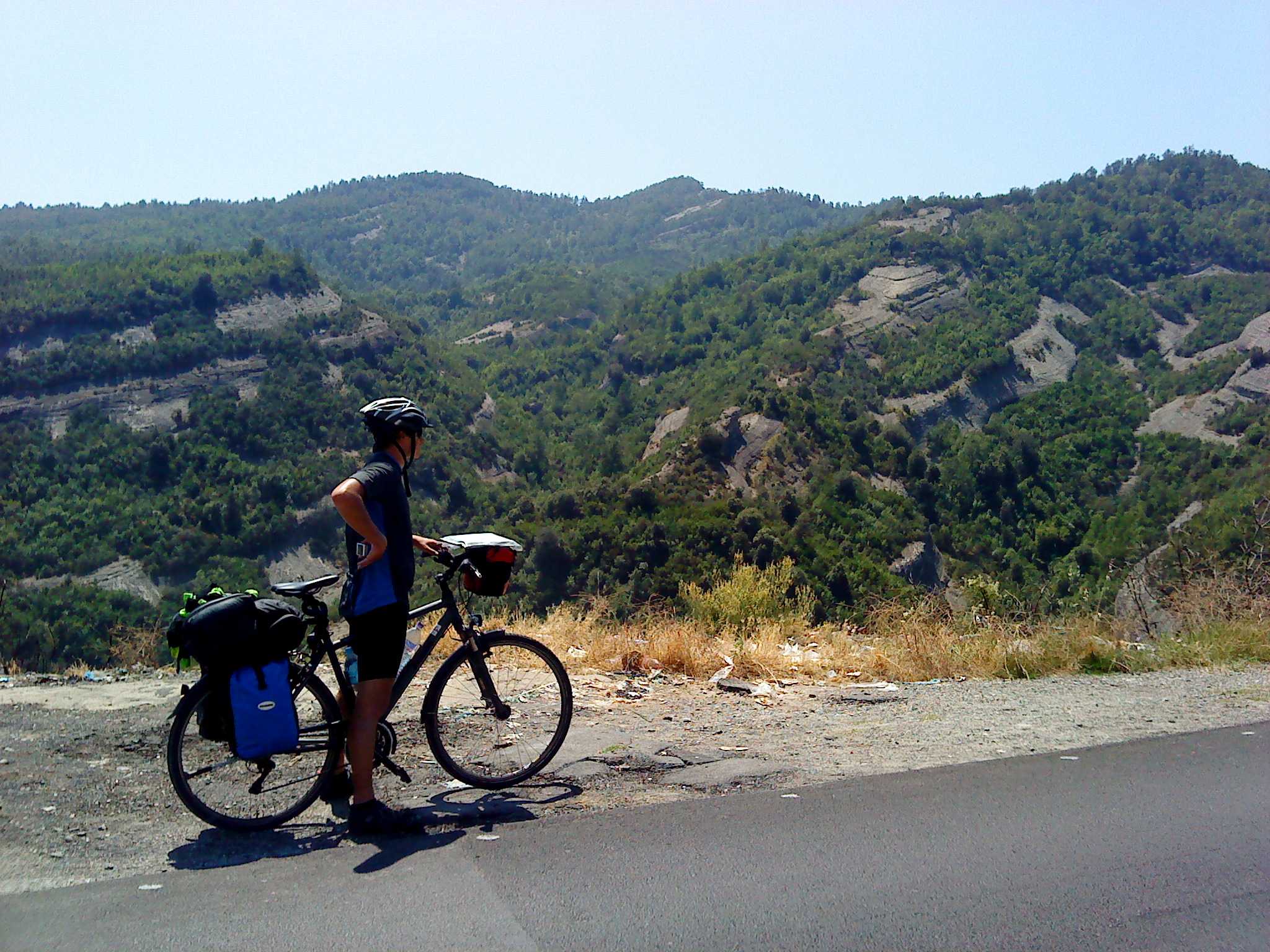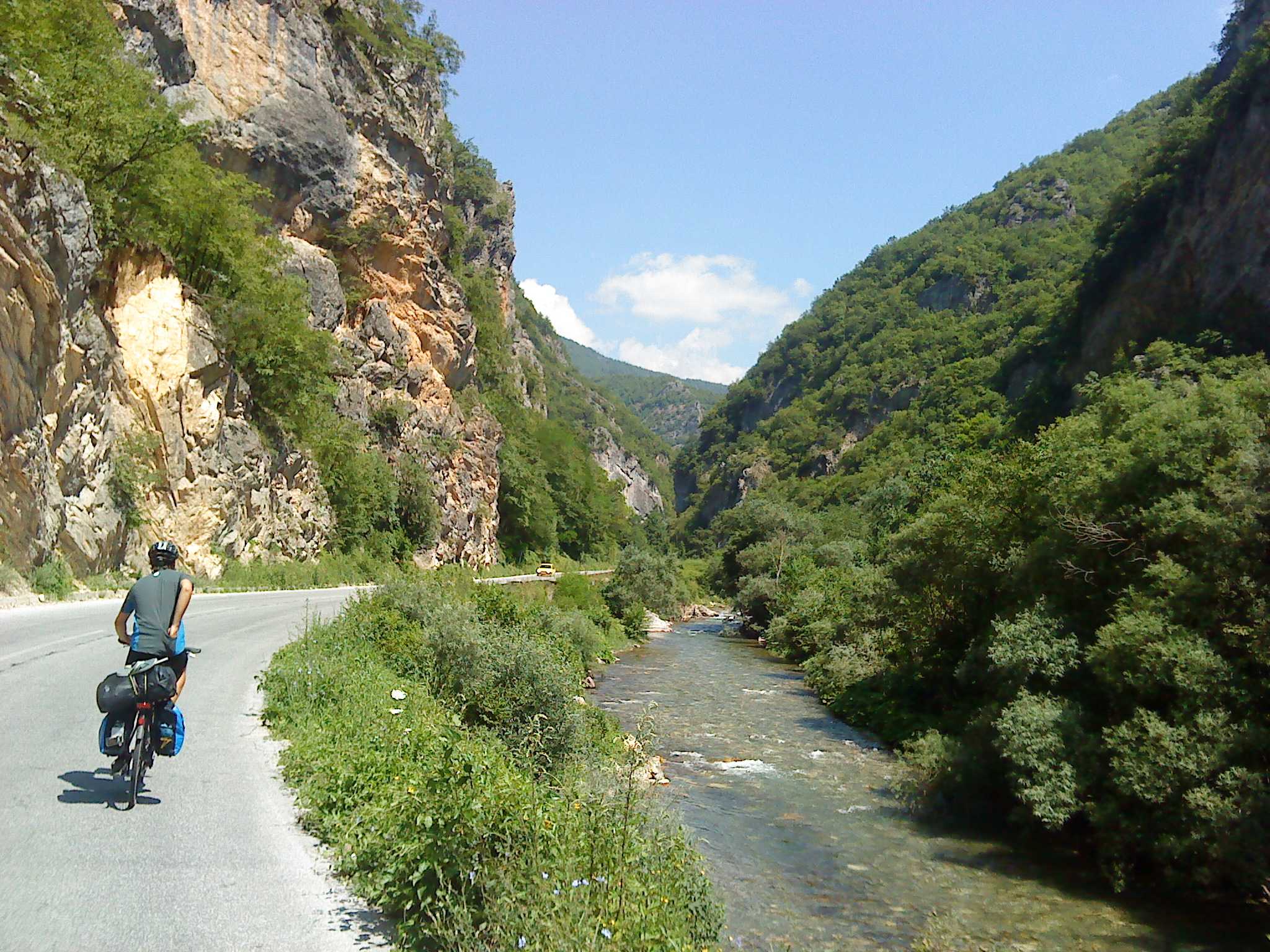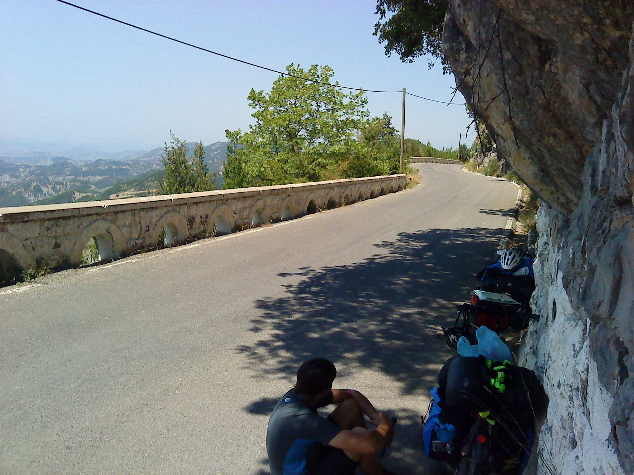 Als wir am Morgen aus unserem Hostel in Tirana treten wartet erst mal eine böse Überraschung auf uns. Ich habe einen Platten, und das ausgerechnet an dem Tag, an dem wir uns die lange 130-km-Etappe an den Ohridsee vorgenommen haben. Das Flicken kostet Zeit und so kommen wir erst in der Dunkelheit an dem kleinen überfüllten Campingplatz an.