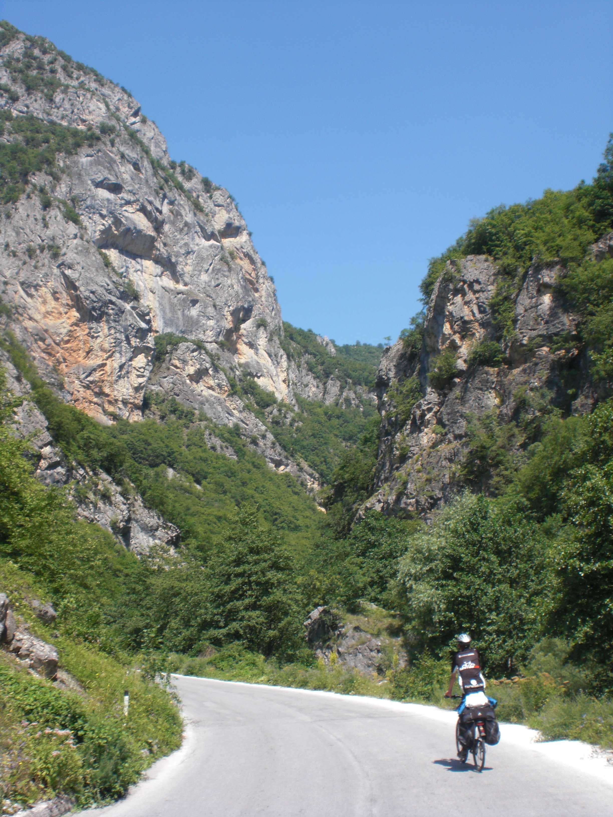 Wir durchqueren den Sharr-Mountains-Nationalpark und erfreuen uns an der zunächst nur schönen, kurz vor Prizren sogar auch spektakulären Landschaft. Mal wieder Felsen, die über die Straße hängen.