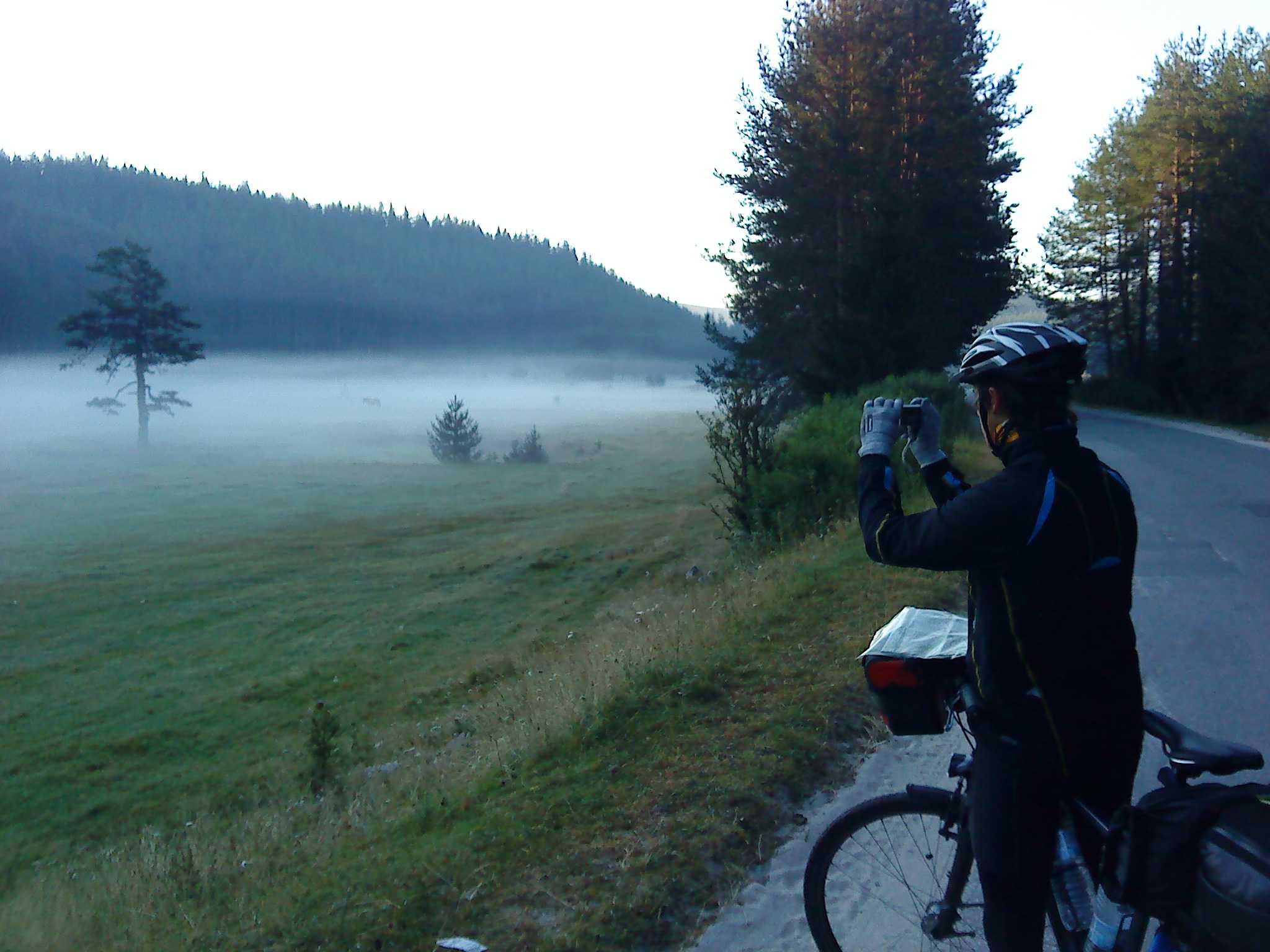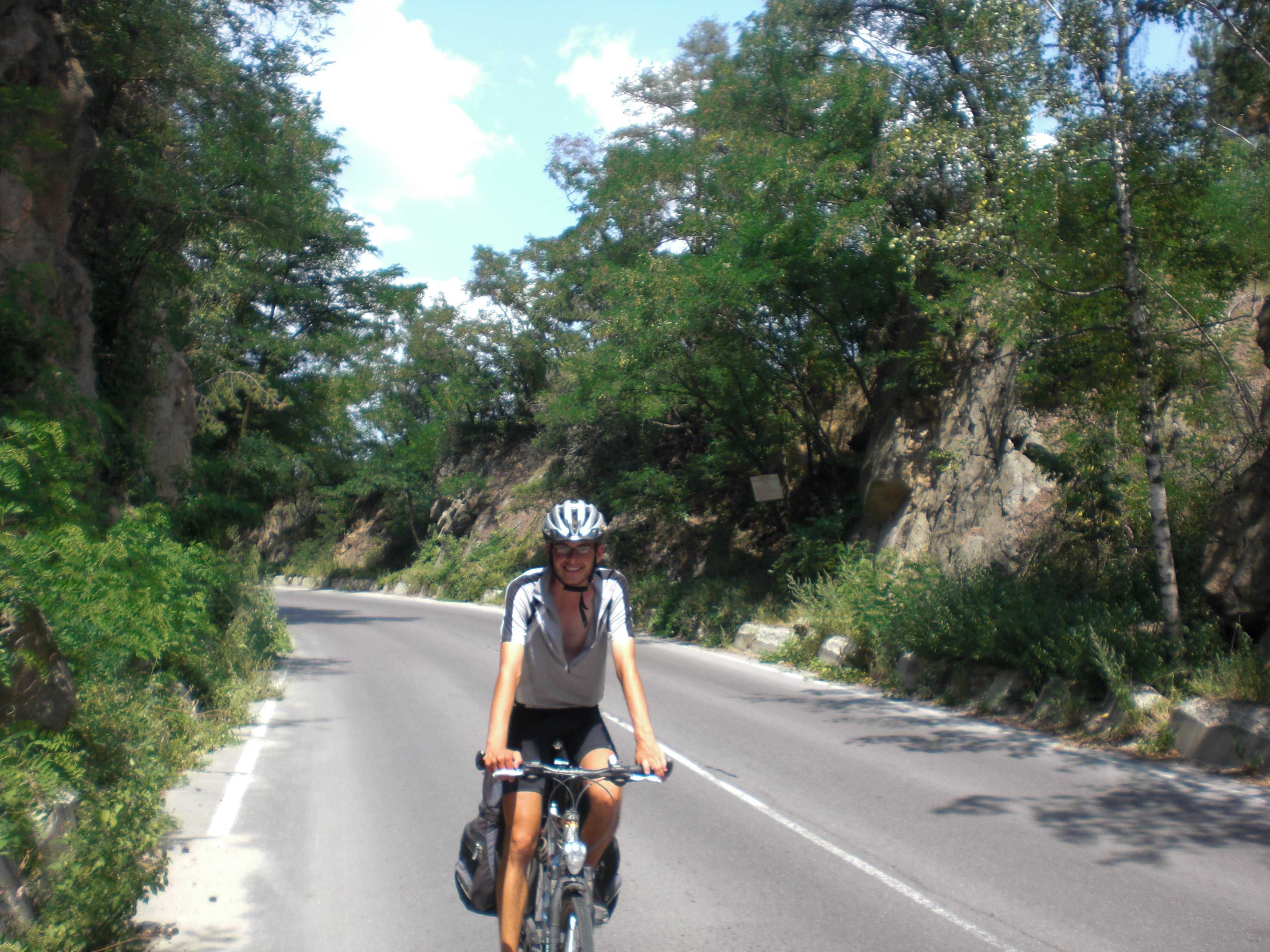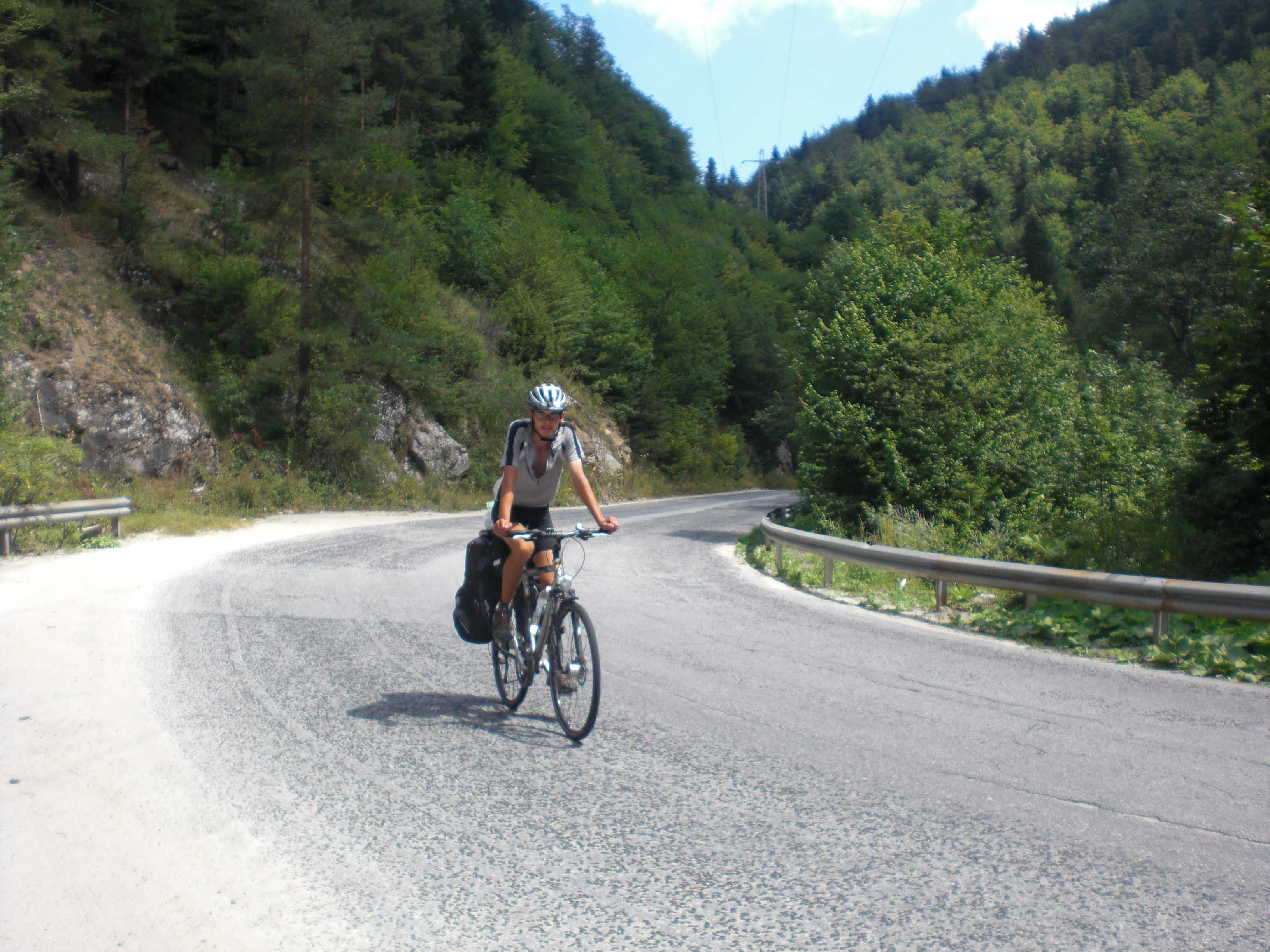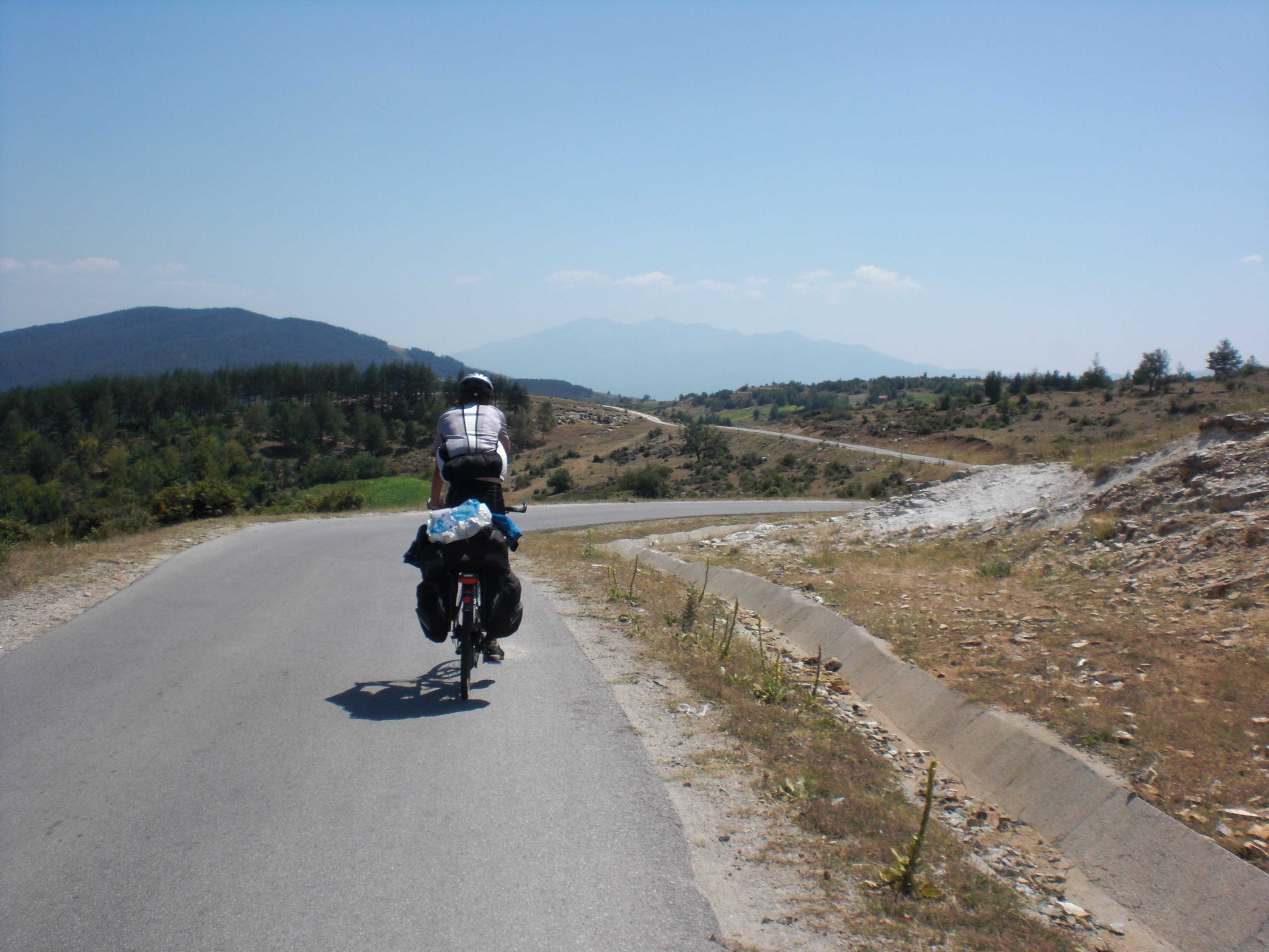 Die Route von Sofia nach Griechenland führt über die bulgarischen Berge; zunächst bewaldet sind sie dem Wehratal oft nicht unähnlich. Weiter im Süden lichten sich die Gipfel und bieten so einen fantastischen Rundumblick, den wir auf einer wunderschönen, abschüssig-gewundenen Straße bestaunen können.