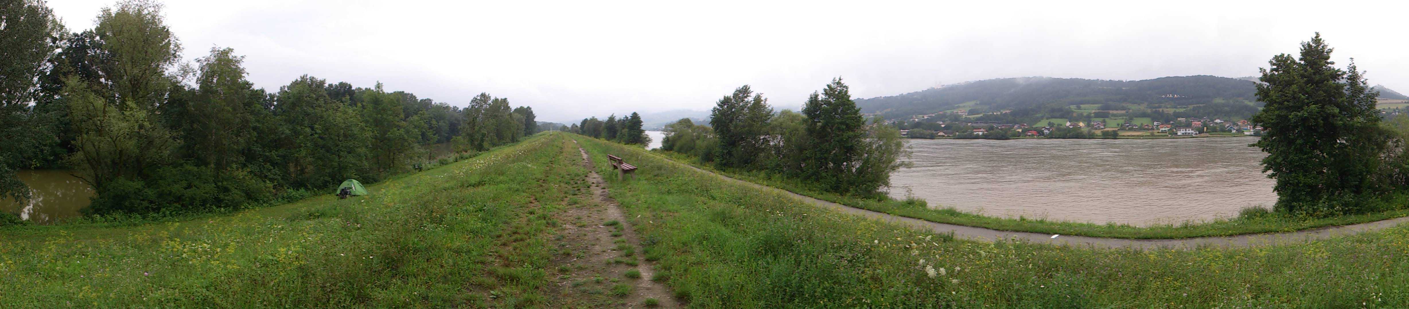 Am letzten Sonntag haben wir Reit im Winkl verlassen und am selben Tag auch Deutschland. Kurz vor Salzburg überqueren wir die Grenze, sehen uns Salzburg an (die Festung Hohensalzburg lassen wir wegen horrender Eintritte aus) und bauen schließlich unser Zelt einige Kilometer hinter Salzburg auf. Am nächsten Tag steht See-hopping an: Wir fahren auf teils sehr schönen Wegen am Mondsee, Attersee und Traunsee entlang. Nach einer weiteren Nacht im Zelt neben einem Maisfeld, das vom Sturm völlig zerzaust und zerstört ist, befahren wir die endlose Hügellandschaft Niederösterreichs. Zum Zelten fragen wir bei einem Bauernhof nach einem Platz auf dessen Wiese – wir dürfen. Neben dem Misthaufen steht ein massiver Metallbehälter, in dem die Sonne das Wasser erwärmt und an dem oben ein Duschkopf befestigt ist und wir duschen erstmals seit Reit im Winkl wieder. Im Bauernhof wohnen Großeltern, deren Sohn samt Frau und zwei Enkeln. Die Großeltern arbeiten beide auswärts, der Großvater und ebenso der Sohn im nahen BMW-Motorenwerk in Steyr. Früher hatten sie noch eigene Kühe, aber die lohnen sich nicht mehr. Daher werden mittlerweile nur noch zwei Ferkel jährlich gekauft, gemästet und schließlich geschlachtet. Wir bekommen Speck von den eigenen Schweinen. Sitzt man so am Tisch mit fremden Leuten, so passiert es doch häufig, dass einem nach einer gewissen Zeit die Gesprächsthemen ausgehen. In diesem Fall wird diesem Problem rechtzeitig mit Bier und schließlich mit Schnaps begegnet. Die Schnapsgläser sind dreimal so groß wie gewohnt und als wir darauf hinweisen wird die deutsche Schnapskultur ein wenig belächelt. Wir lächeln mit und trinken den Schnaps eben in mehreren Zügen (wie übrigens auch die österreichische Familie).