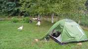 Doch zum ersten Mal erfahren wir nicht ganz die absolut herzliche Gastfreundschaft, mit der wir sonst verwöhnt wurden. Als wir am Gatter halten, um nach einer Möglichkeit zu fragen, unser Zelt aufzustellen, sind es die Frauen, die es uns erlauben und offenbar kein Problem damit haben. Die Großmutter lädt uns auch dazu ein, die Toilette des Hauses zu benutzen. Doch als wir nach dem Aufbauen des Zeltes das Angebot wahrnehmen wollen und an der Terassentür klopfen, macht der Großvater fuchtelnde Gesten (wie stören ihn anscheinend beim Olympia-Schauen) und auch sein Schwiegersohn, der uns schließlich öffnet, wirkt leicht genervt. Nach Rücksprache mit den Frauen – die wir nicht mehr zu Gesicht bekommen – lässt man uns auf die Toilette, aber sehr willkommen fühlen wir uns nicht mehr. Am nächsten Morgen sind noch alle Rollläden des Hauses geschlossen, das Auto ist weg; wir verlassen das Grundstück, ohne uns zu verabschieden.
