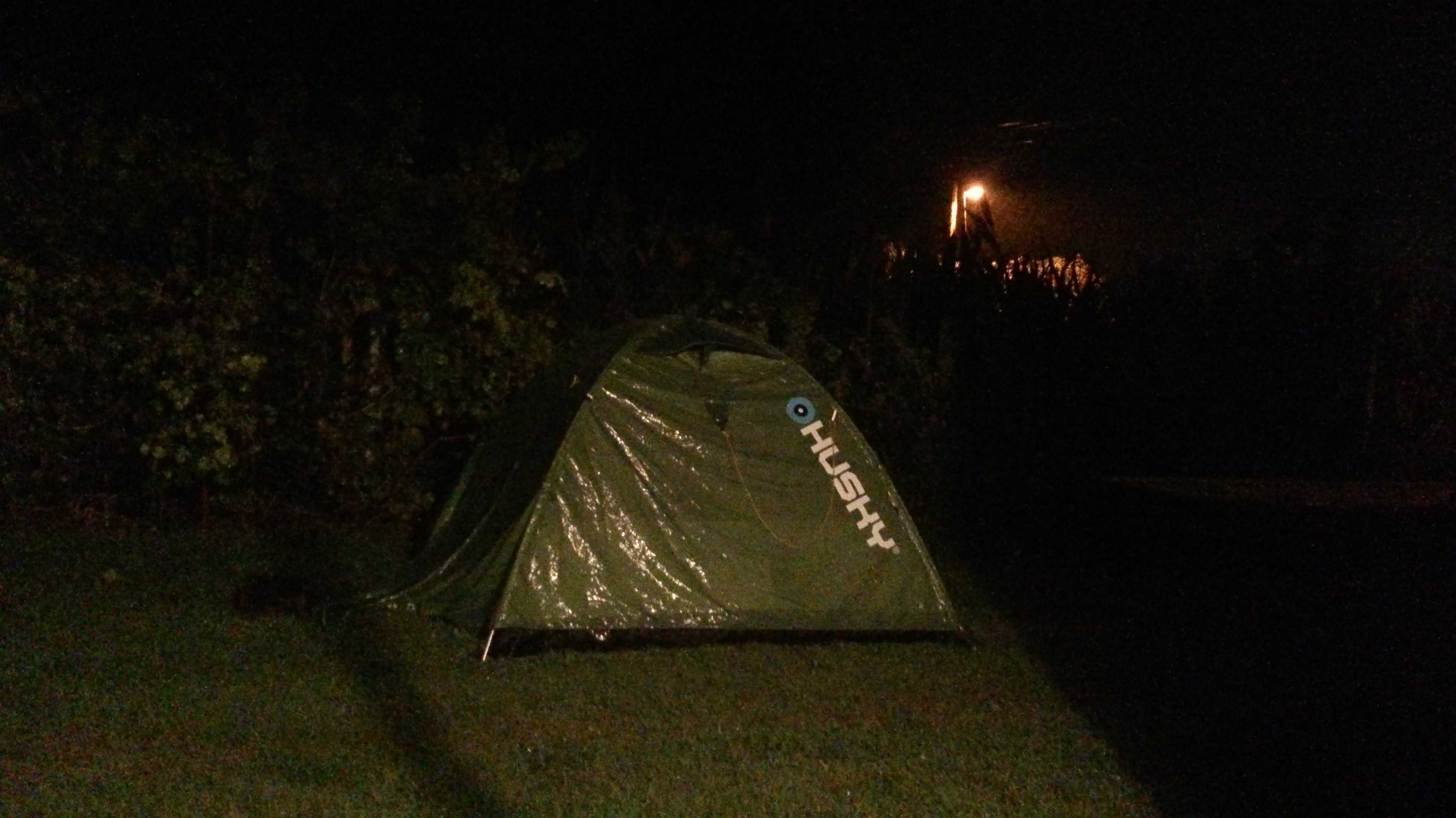 Nach dem Flicken fahren wir noch einige Kilometer. Es wird langsam dunkel und wir werden etwas nervös, denn wir müssen noch einen Schlafplatz finden. Schließlich fragen wir an einem Restaurant nach: Das Gebäude steht einige hundert Meter hinter dem Dorf Kulasi, ein recht neues Holzhaus, das anscheinend zugleich Gaststätte und Wohnhaus ist. Es gibt einen großen, gepflegten Rasen, das Etablissement wird von einer Frau mittleren Alters geführt, die perfekt Deutsch spricht, da auch sie ihr halbes Leben in Deutschland gelebt hat – es ist einfach der perfekte Ort zum Campen für uns.